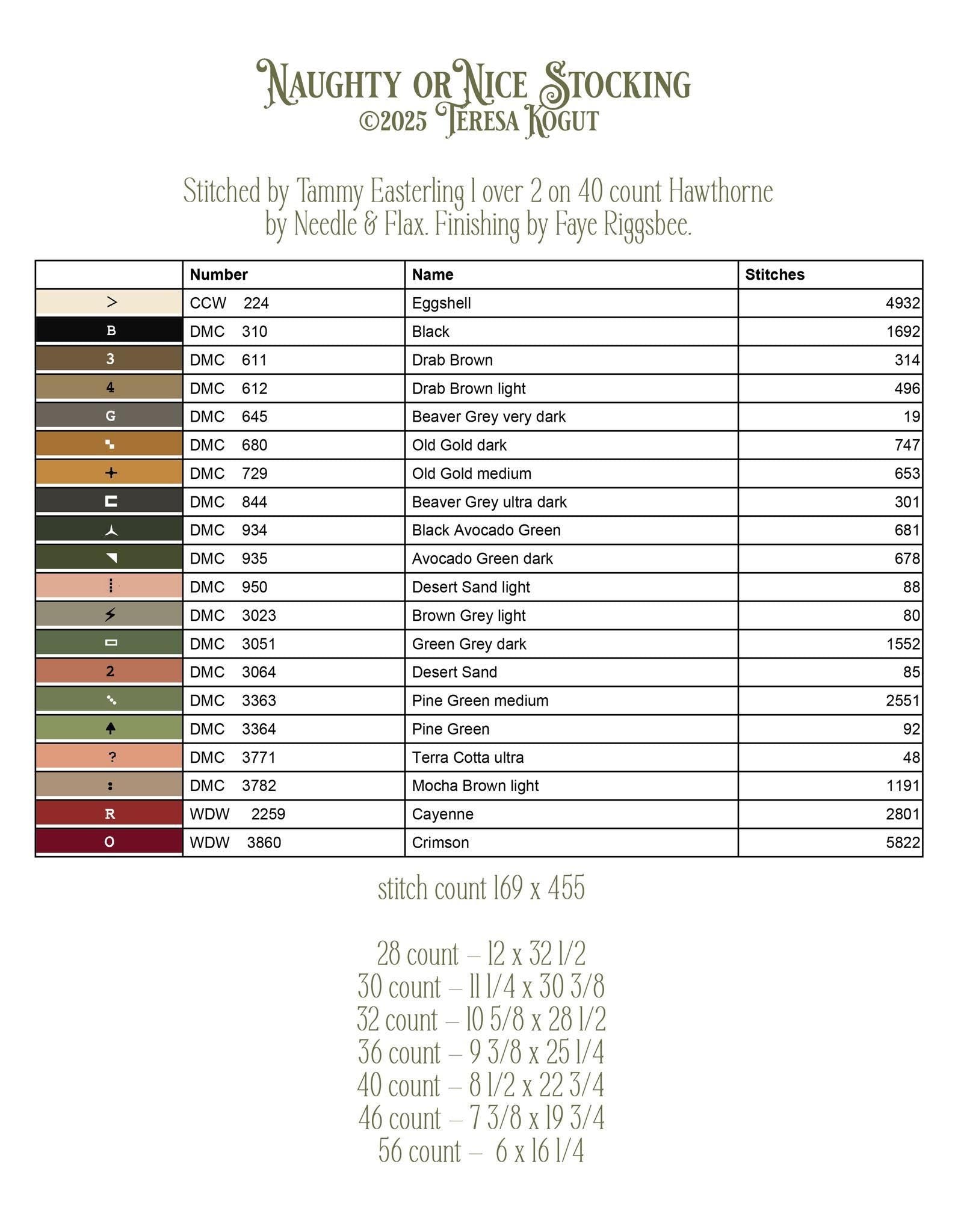 Naughty or Nice Stocking by Teresa Kogut - Cross Stitch Paper Pattern