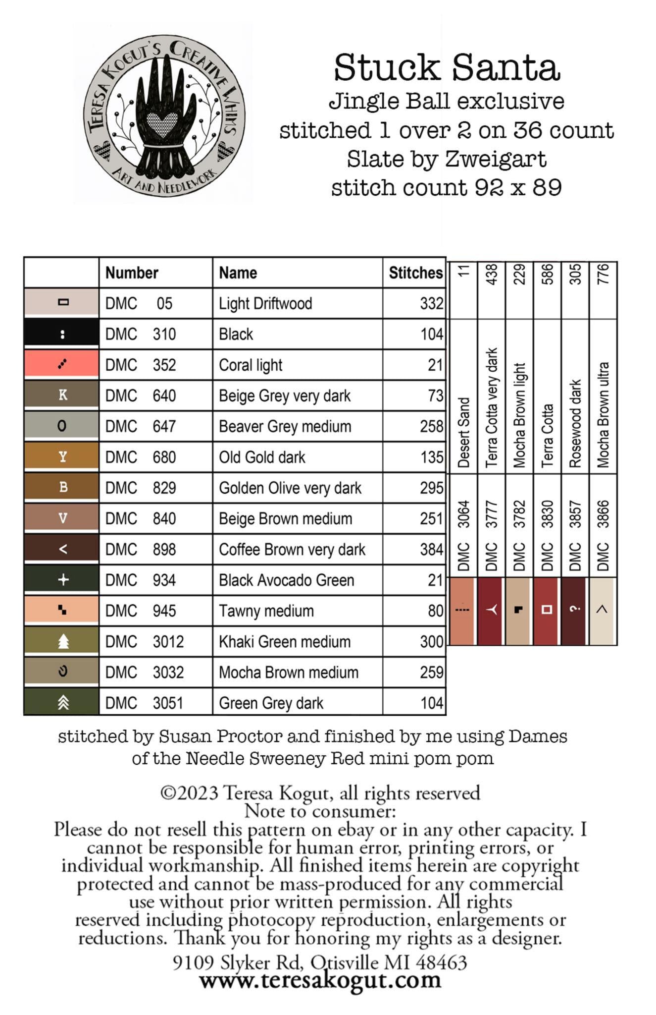 Stuck Santa by Teresa Kogut - Cross Stitch Paper Pattern